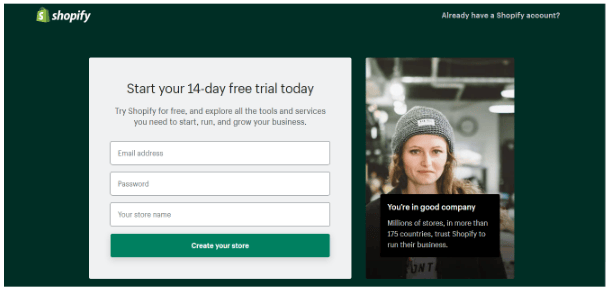 Register for Shopify: Visit the Shopify website and click the "Get Started" button. Enter your email address, a unique store name, and password.